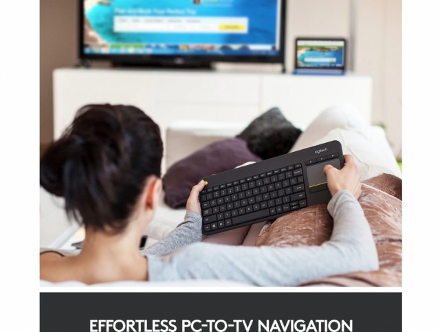Logitech K400 Plus er mer enn bare et tastatur; det er en komplett kontrollsenter for din digitale underholdning i stuen.