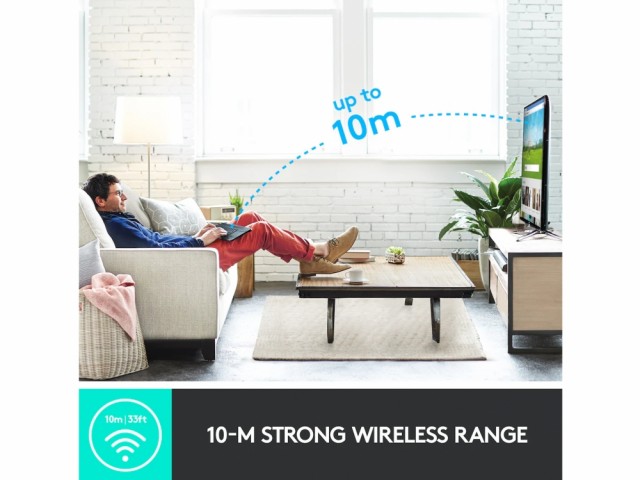 - Unifying-mottaker: Tastaturet kobles trådløst til din PC eller TV via Logitechs anerkjente Unifying-mottaker. Denne lille USB-mottakeren gir en kraftig og pålitelig 2,4 GHz trådløs forbindelse med en rekkevidde på opptil 10 meter. Du kan til og med koble til flere kompatible Logitech-enheter med samme mottaker.
