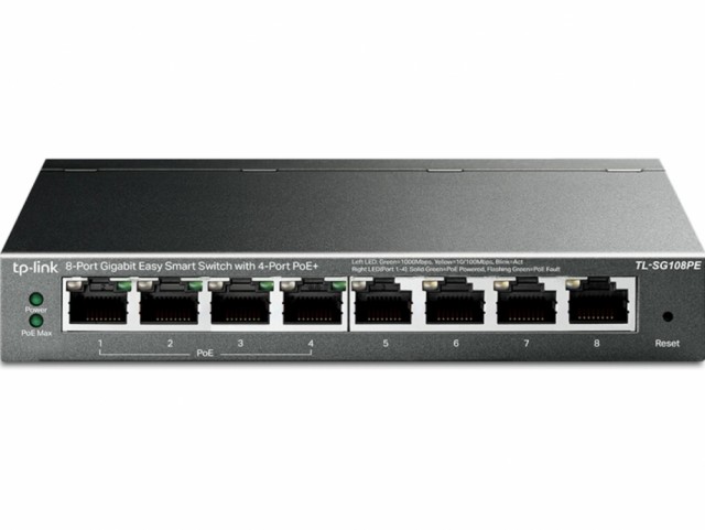 TL-SG108PE er en 8-ports Gigabit Easy Smart Switch med 4 PoE-porter, og representerer en kraftig oppgradering sammenlignet med en ikke-administrert svitsj. Den er designet spesifikt for små bedrifter som har behov for enkel nettverksadministrasjon og PoE-funksjon. TL-SG108PE kan koble til og strømme opptil fire PoE-enheter, for eksempel trådløse tilgangspunkter (AP-er), IP-kameraer og IP-telefoner. Gjennom det nettbaserte brukergrensesnittet og administrasjonsverktøyet tilbyr TL-SG108PE en rekke nyttige funksjoner, inkludert nettverksovervåkning, trafikkprioritering og forbedret QoS. I tillegg kan TL-SG108PE med portbasert, tag-basert og MTU VLAN forbedre sikkerheten og oppfylle flere krav til nettverkssegmentering.